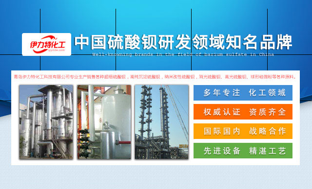 伊力特化工简介—青岛伊力特化工科技有限公司是一家专业生产硫酸钡、球形硅微粉·煅烧高岭土超微细粉体,集矿产开发、科研、生产、销售为一体的综合性企业。公司坐落在具有“中国重要的沿海开放城市、风景旅游度假胜地青岛“美称的优秀旅游城市——青岛。公司享有便利的水、陆、空立体交通,拥有丰富而优质的矿产资源、先进之设备、雄厚的技术力量、完善的检测手段和质量管理体系,采用国内国际业务同步发展的战略,其销售网点遍布全国及海外,与国内外近三十多家企业、厂家有长期业务合作。青岛伊力特化工科技有限公司在发展中富集了大批人才,积累了丰富的经验和全面的技术知识,拥有先进的微细粉体加工技术,利用国内外先进的生产工艺,运用纯物理和化学的加工手段对精选重晶石、粉英石进行超微加工处理。公司产品经国家非金属监测中心检验,各项指标均达到ISO3262粉体质量标准;部分产品通过美国ASTMF963、欧洲EN71:Part3标准;各项指标通过SGS标准严格检测。广泛用于粉末涂料、水性涂料、中高档油墨、塑料、橡胶、造纸、医*合成化工、陶瓷、化妆品等领域。伊力特服务——伊力特化工严格而科学的质量管理,确保了产品的质量,提高了产品的性价比。公司本着“将有品质的产品准时附运给客户,价钱要具竞争力,而又能符合客户所规定的品质、可靠性和各种功能的要求”的品质政策,将以更优质的产品和更快捷的服务来满足您的要求。